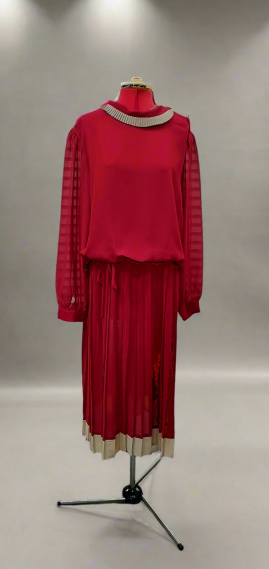 Maroon Dolina Pleated dress, 1980's vintage style. Size- XL