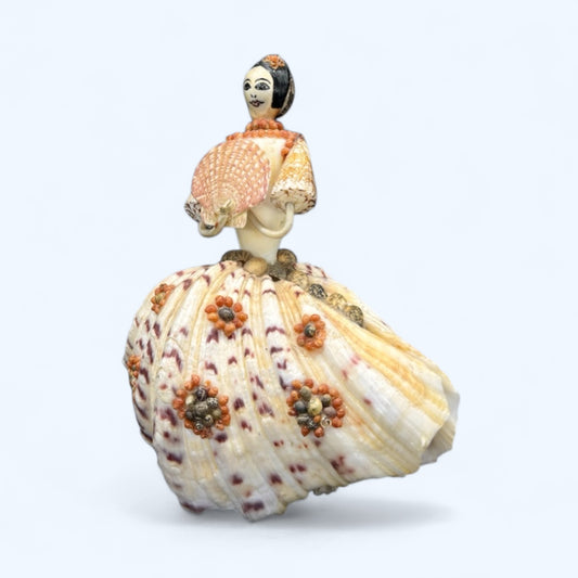 MCM 1960’s seashell made lady in clamshell dress,seashell,elegant,folk art