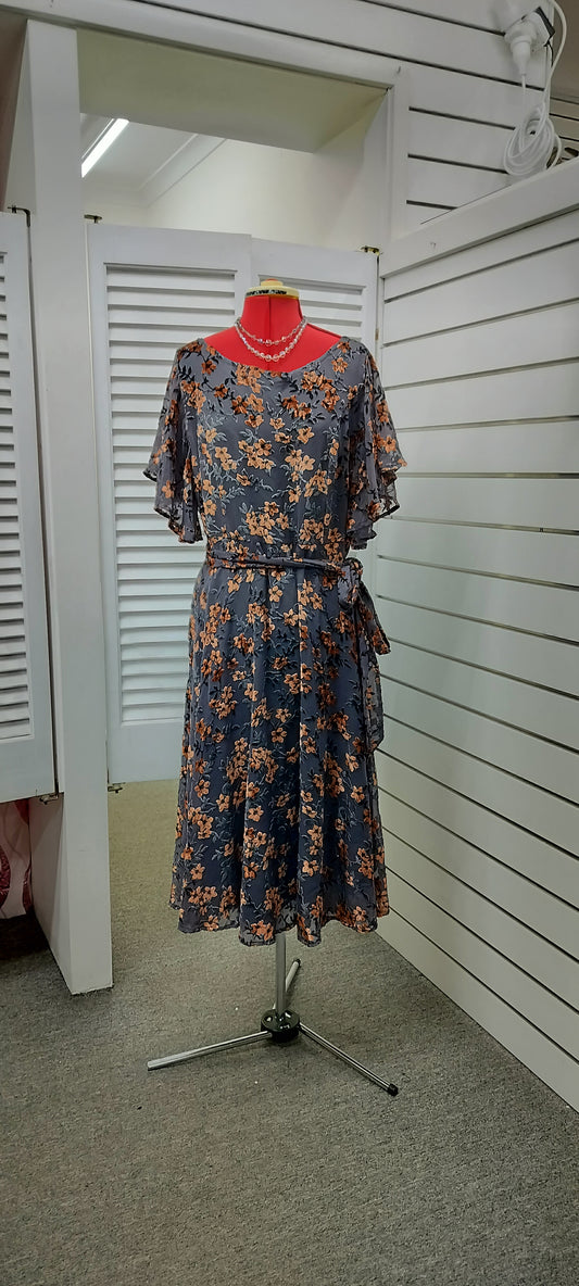 Maiocchi grey + burnt orange velvet dress. Size-14.