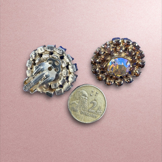 Vintage 1960s French Clrip On Earrings Rhinestone