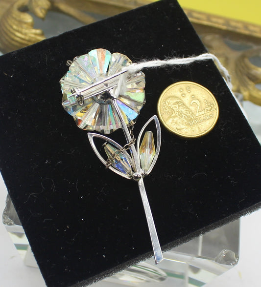 Vintage Arena Borealis Brooch 60s Vintage Aurora Borealis Flower Cluster Brooch on Silver Tone.