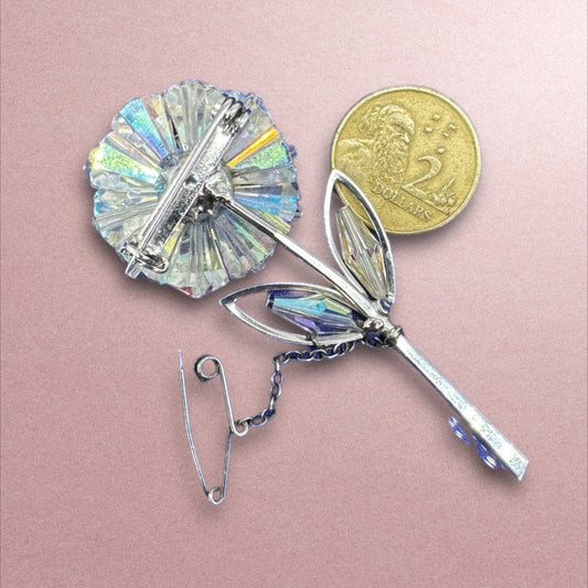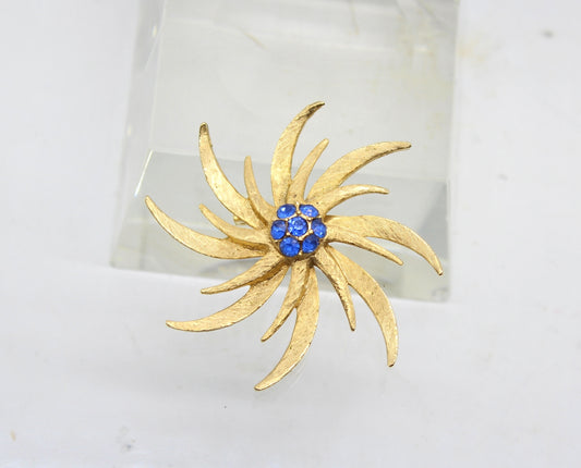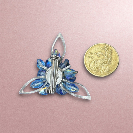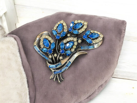 vintage blue brooch with pair of matching earrings,blue rhinestones