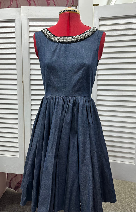 Vintage Blue Denim and Sequin Fit Flare Dress