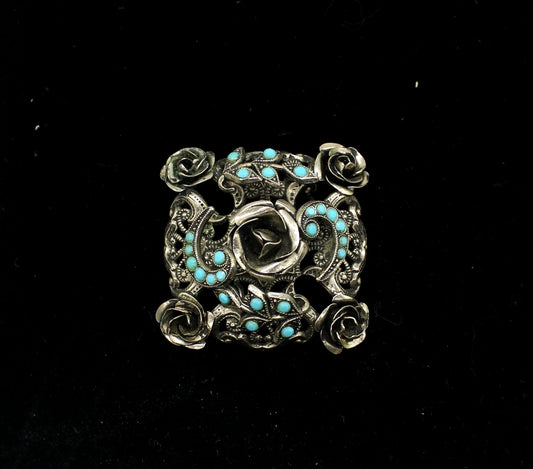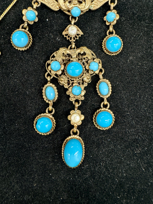 vintage Czechoslovakia made classic design brooch with faux turquoise and pearl