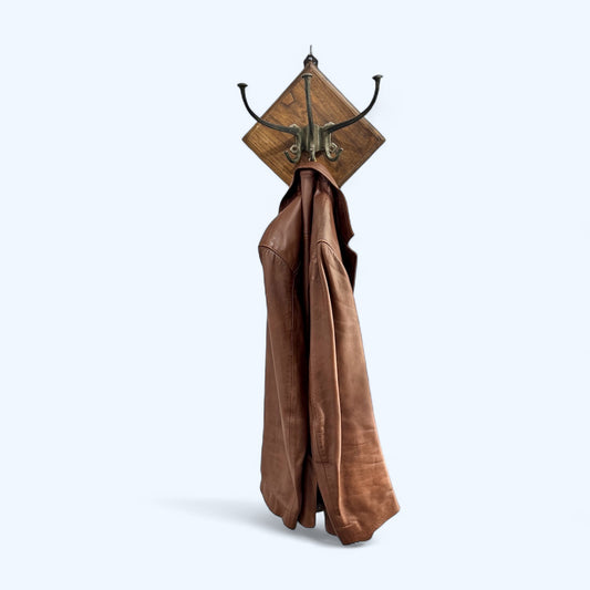 vintage Coat Rack in Wood with three big Metal Hooks,wall hanging