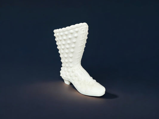 Vintage Fenton White Milk Glass Hobnail Ladies High Heeled Boot - Shoe - Vase