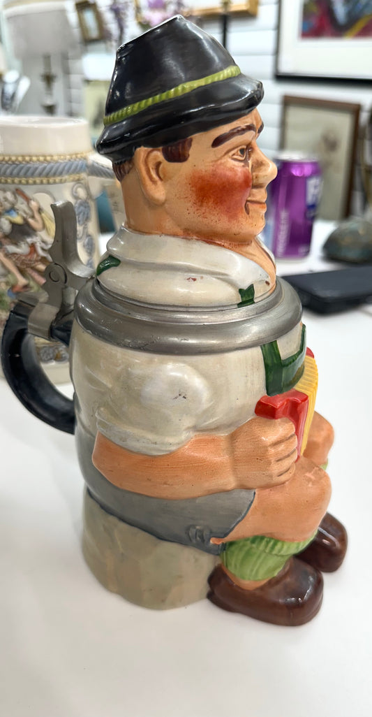 Antique Merkelbach Beer Stein Musician Accordion Player,made in Germany