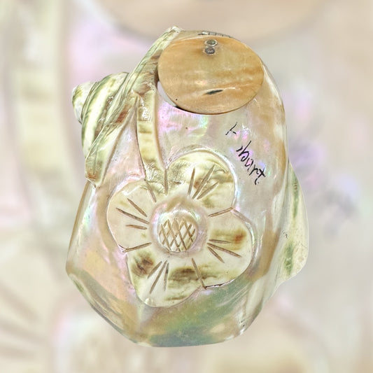 Antique hand carved mother of pearl shell SOUVENIR inkwell