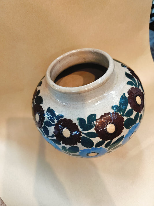 Elchinger et cie French pottery floral vase. Size- 7.5" x 8.5", diameter 25.2".
