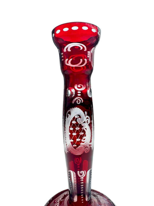 Egermann Bohemian Ruby Red Cut to Clear Crystal Glass Candlestick/vase