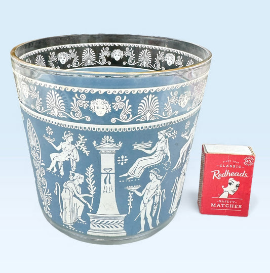 Jeannette Glass Ice Bucket – Blue Hellenic Greek Roman Design with Gold