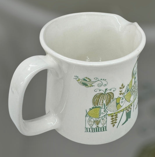 Figgjo Market Jug, Turi Design, 1960s Vintage Norwegian Ceramic Pitcher, Green & Yellow Folk Art