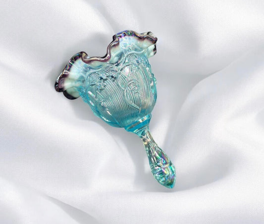 1990s Fenton Opalescent “Lily of the Valley” bell, Blue Plum Ruffle, RARE Piece