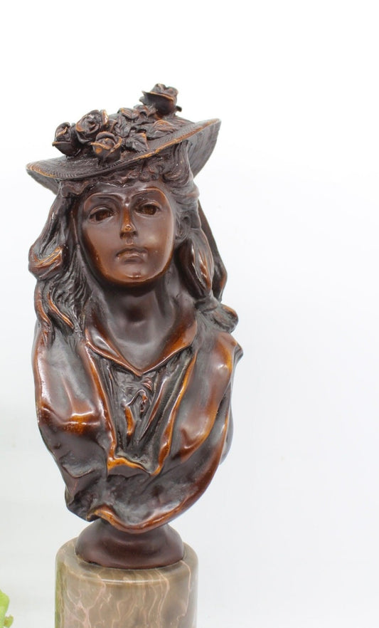 Signed Bronze Sculpture Bust On Mable Base