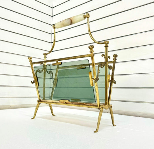 Rare 60's Brass glass&Onyx magazine rack by Masion bagus