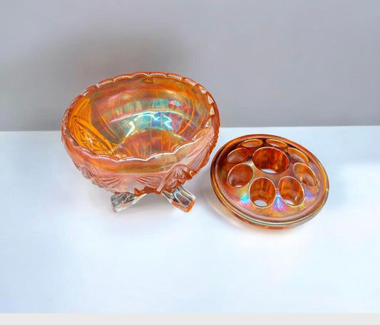 Sowerby Carnival Glass Footed Rose Bowl with Original Frog