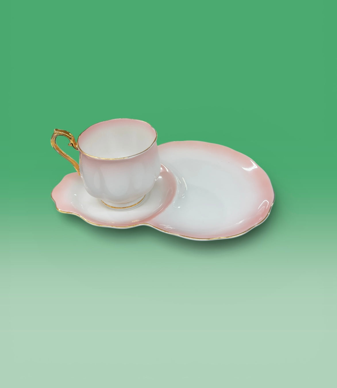 Beautiful vintage Royal Albert teacup and snack plate dating to the 1950s. This charming set features the elegant Hampton shape and a soft rainbow pink glaze, accented with classic Royal Albert detailing. A timeless example of mid-century English bone china craftsmanship.