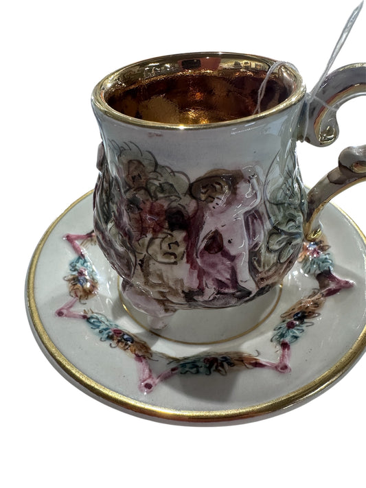 1970s R. Capodimonte Relief Cherubs Cup and Saucer,