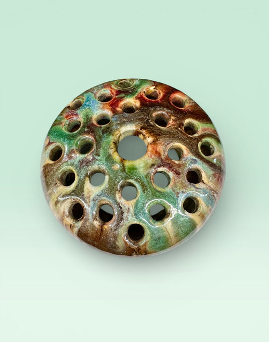 Vintage Amber Glass Flower Frog Desk Organiser