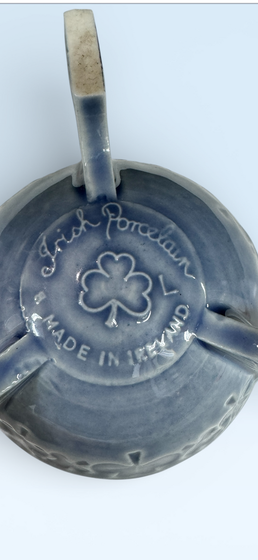IRISH SHAMROCK Footed Trinket Bowl Salt Dip Cellars IRELAND Blue Green