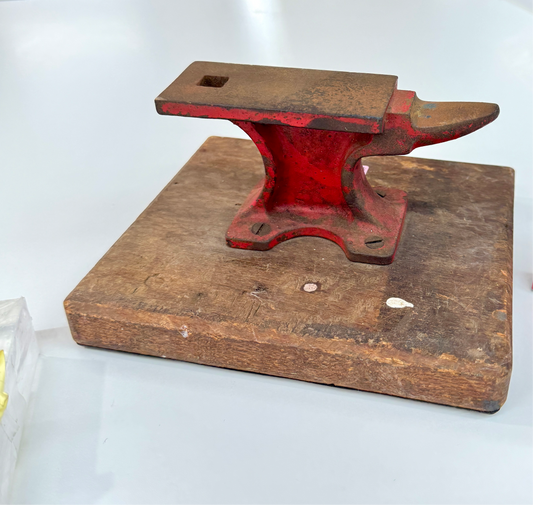 Vintage Small Anvil, Jewelers Anvil, Made In Japan on original wooden base