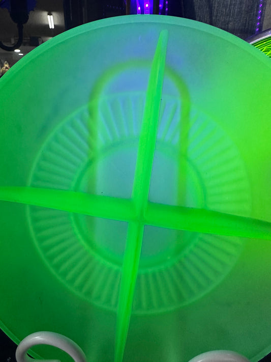 Bagley UK Green Divided Art Deco Plate, Uranium Glass