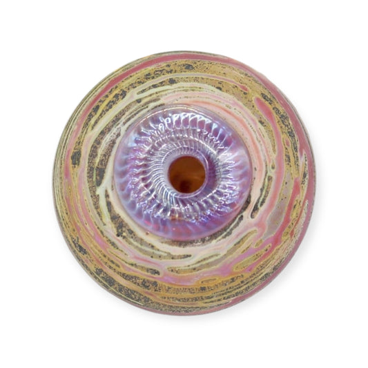 Cream Mauve + Olive Wool Circel Rug , Handknotted + Fringed, Bed room Rug, Round