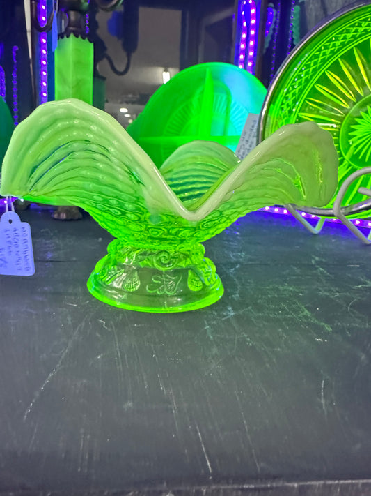 1890 Northwood uranium glass, Argunaut Shell , depression vaseline glass