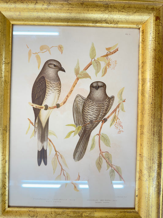 Antique Broinowski Bird Print c1891 | Ground Graucalus / Ground Cuckoo-Shrike | Original Lithograph | Gold Wood Frame | Australian Ornithology Art