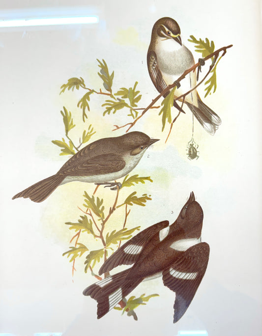 Antique Broinowski Bird Print c1891 | White-Eyebrowed Robin, Dusky Robin & Hooded Robin | Original Lithograph | Gold Frame | Australian Ornithology Art