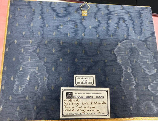 25cm*18cm Framed C. 1842 George Cruikshank Hand coloured wood Engraving
