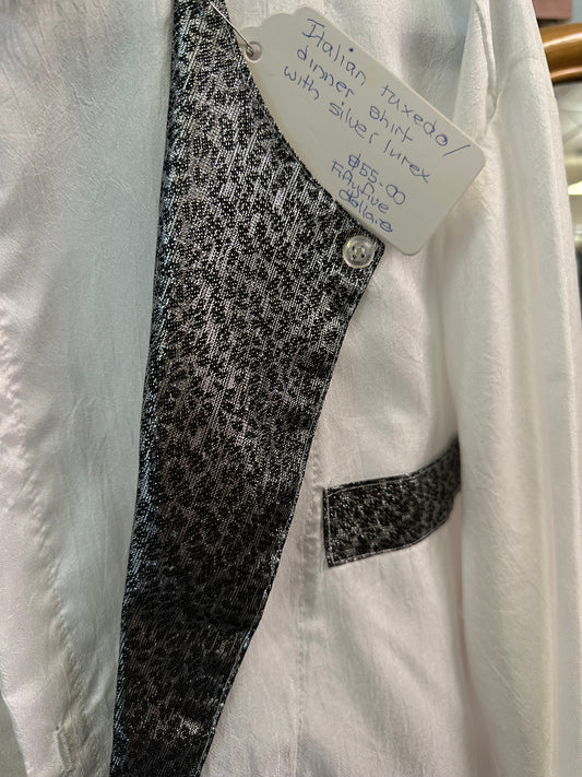 Vintage Italian Tuxedo Dinner Shirt – Silver Lurex Trim – XL