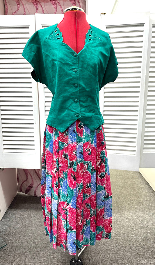 Green Shapiro Cotton Top + Sportscraft Skirt , Made in Australia