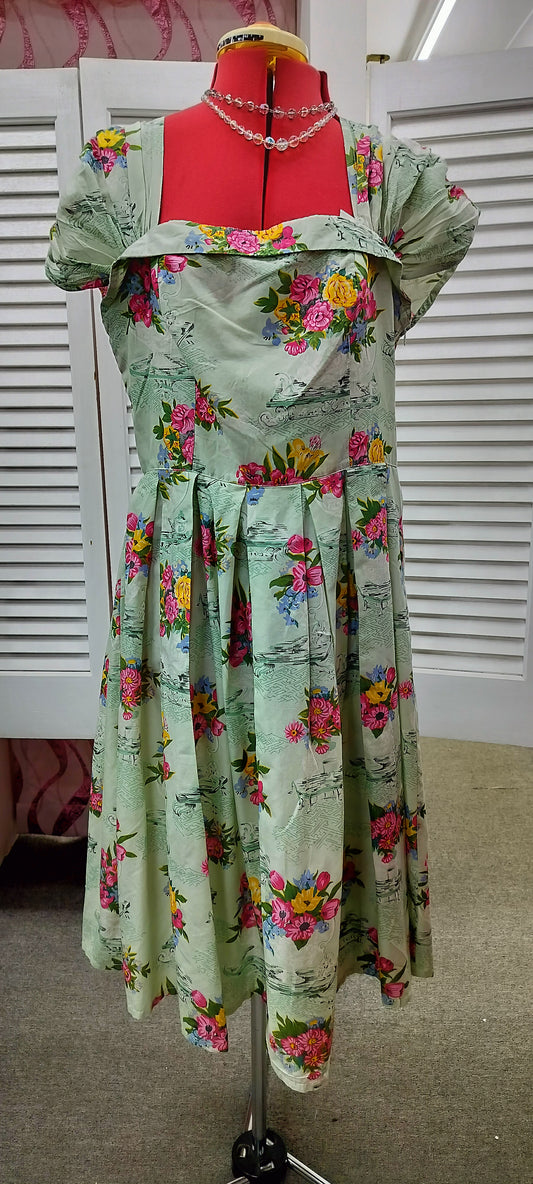 Lazy Bones label, vintage , 1950's, style, linen cotton soft green floral print. Size- XL.