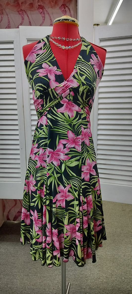Tropical print hatter neck dress, vintage dress. Size- small.