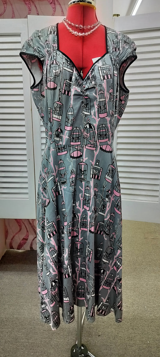 Pink & Grey birds in the cage pin-up couture. (Made in us). Size- 2XL.