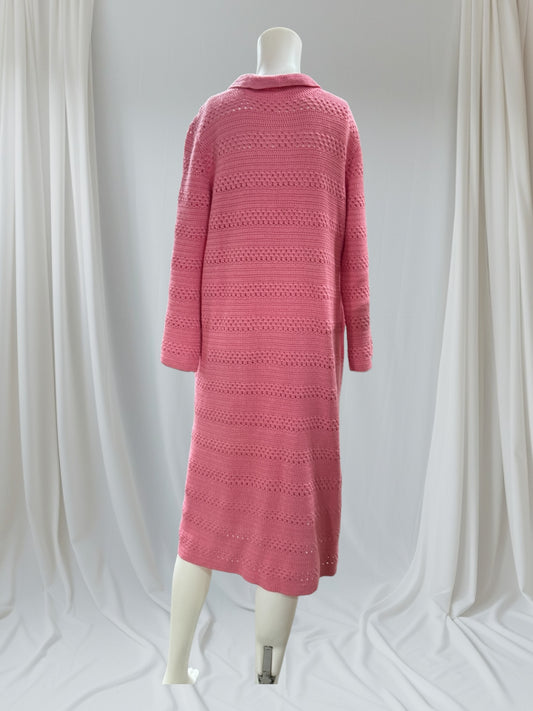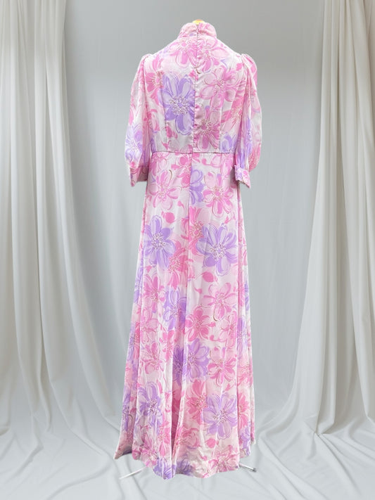 1970s Pink Mauve Hostess Maxi Dress, Small