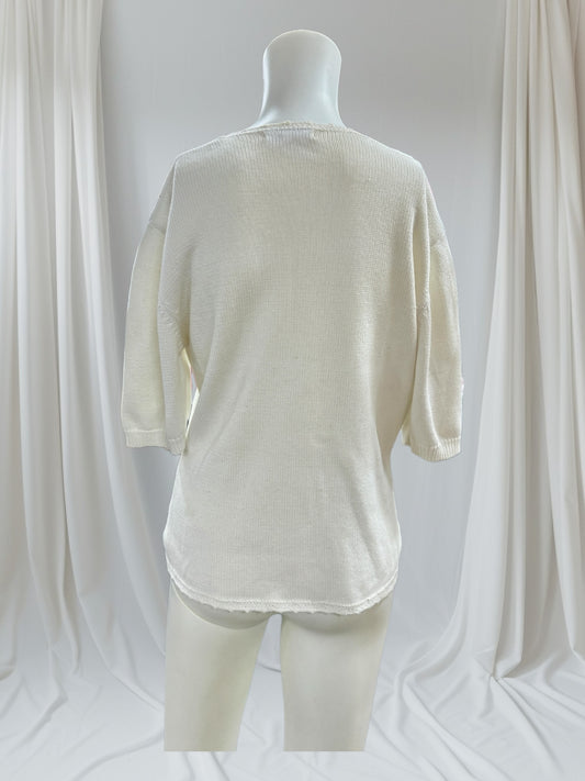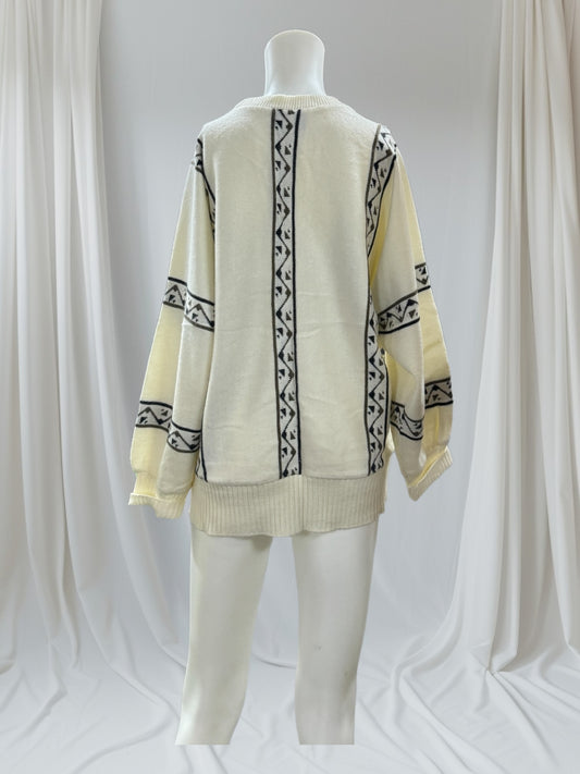 Cream Brown 70s Dolman Sleeve Jumper Medium