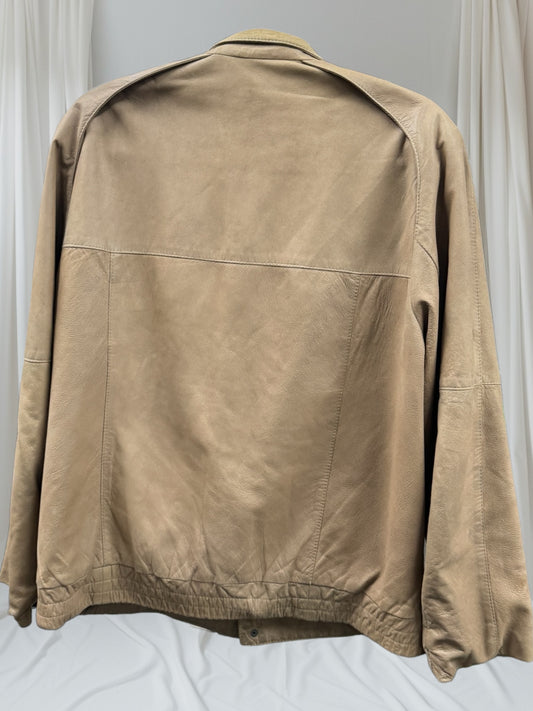 Men’s Tab Leather Bomber Style Zip Front Jacket