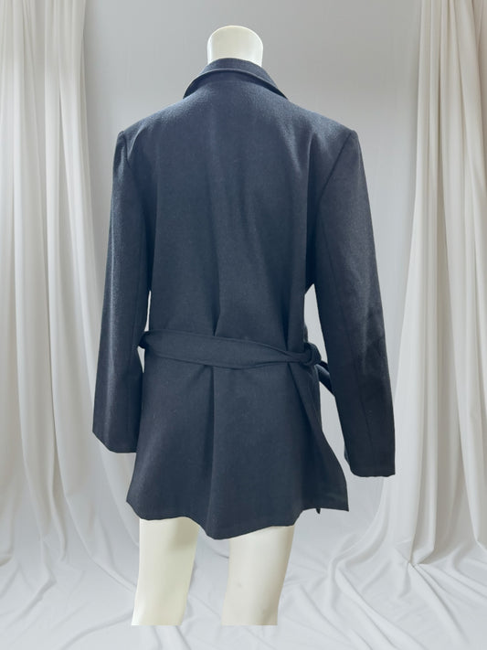 Portfolio Charcoal Wool Tue Waist Jacket, Size 10