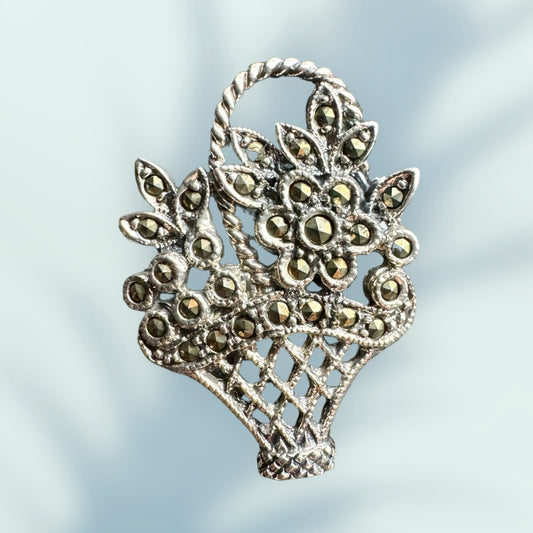 1950s 925 Sterling Silver Marcasite Brooch
