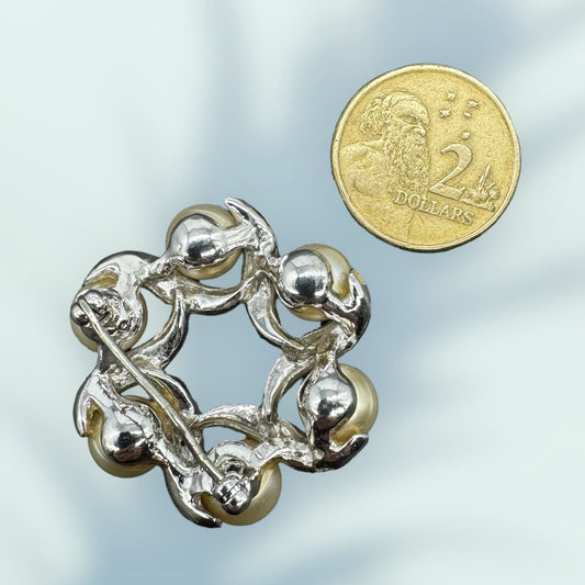 Mikimoto 1950s Sterling Silver Pearl Brooch