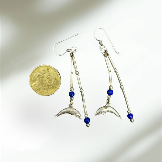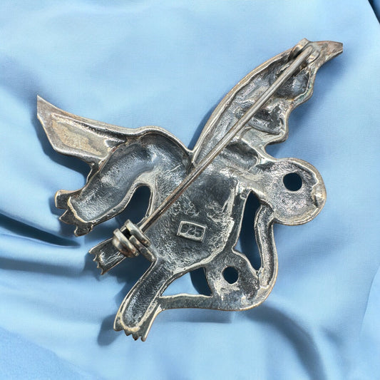 Sterling Silver Marcasite and Blue Enamel Dragon Brooch