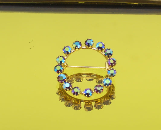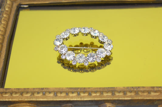 Large Sapphire Blue Crystal Czech Vintage Brooch 1940's