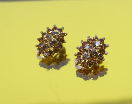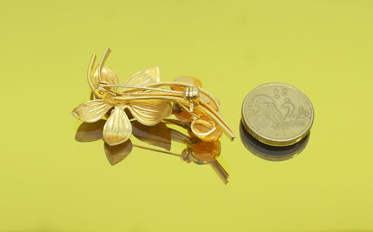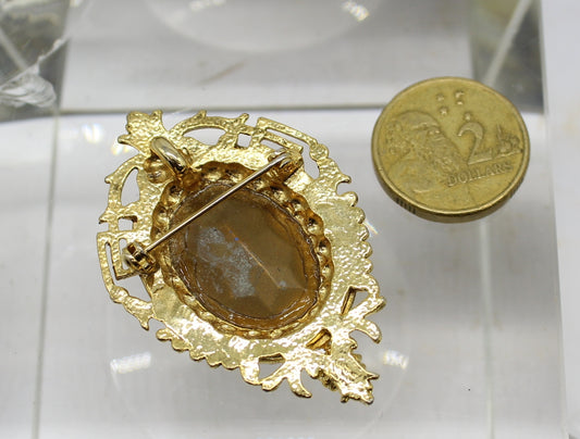 Gold Plated Leopard Brooch with Clear and Black Rhinestones circa 1980s