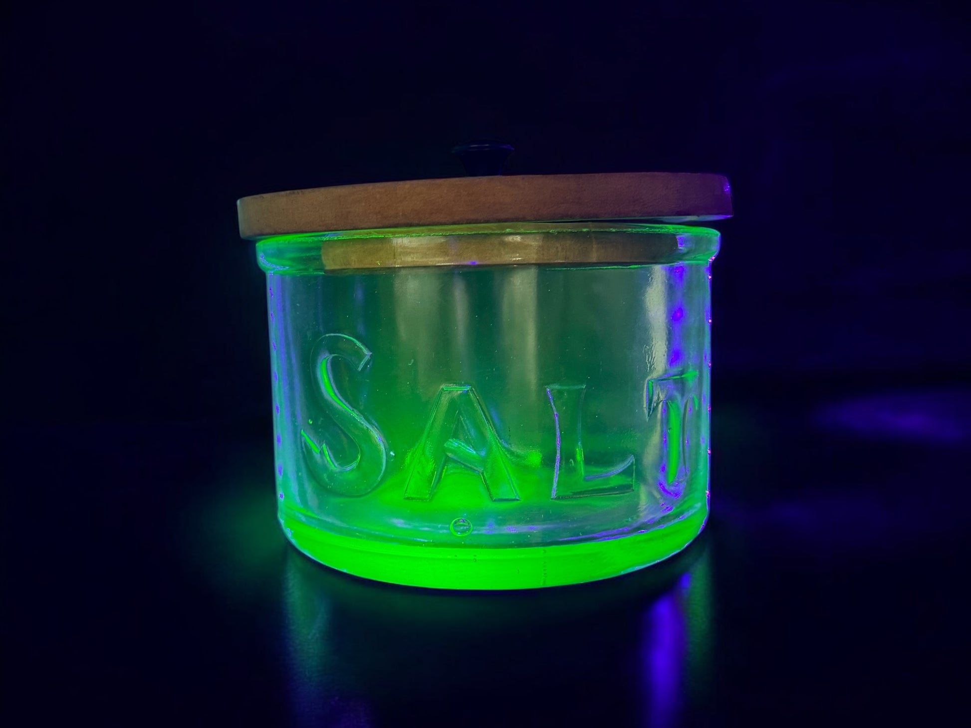 1950’s uranium glass salt cellar with wooden lid,kitchen decor,wall hanging
