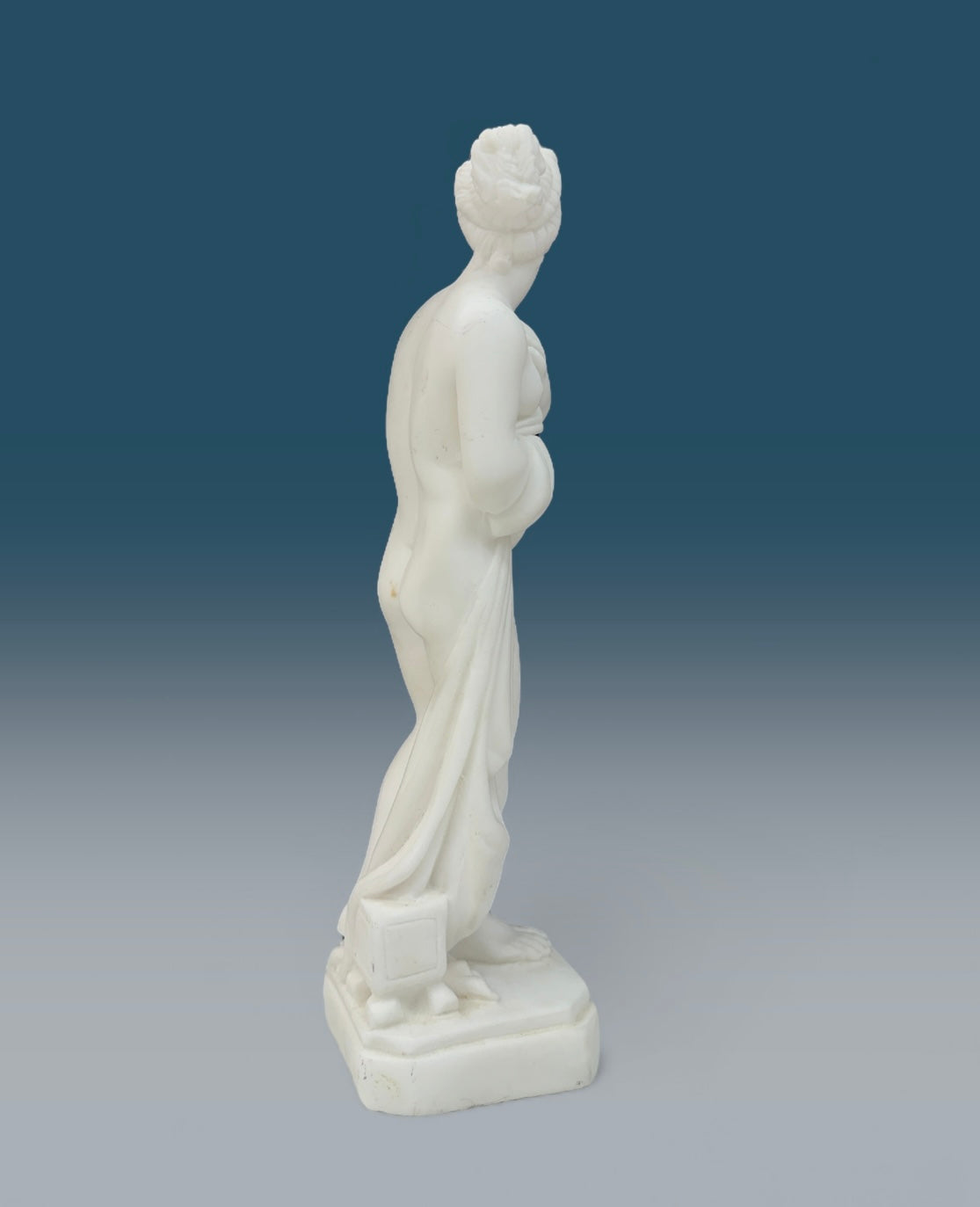 Decorative alabaster statue depicting a classical female figure. Smooth carved finish.