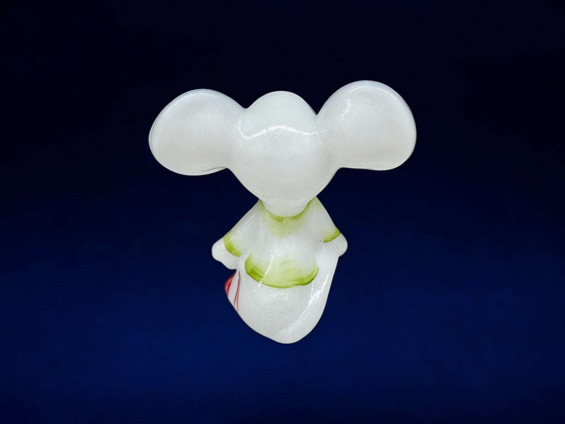 A delightful Fenton hand-painted Christmas Mouse, featuring adorable oversized ears, red polka dots, and festive holiday colours. This charming figurine captures the classic Fenton style—whimsical, sweet, and perfect for Christmas decorating or year-round collecting.