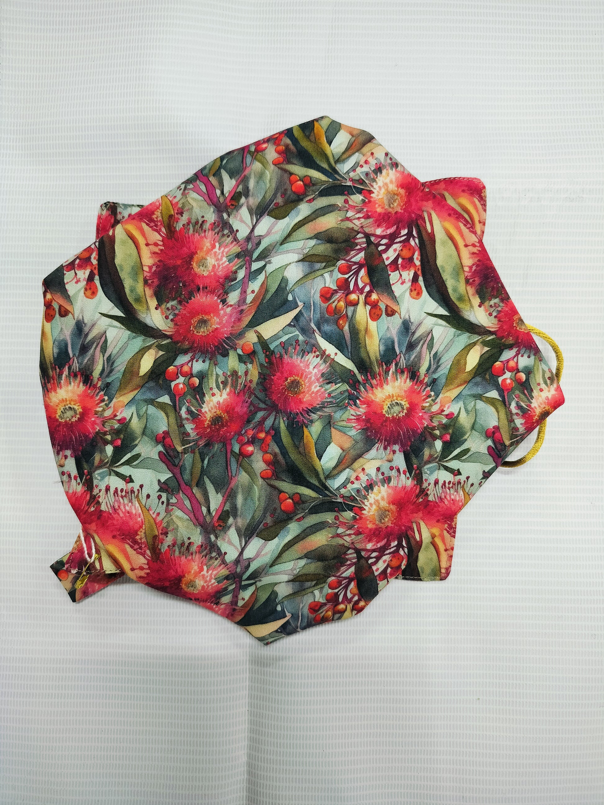 There are several styles of Kinchaku bags. Kinchaku is Japanese for a drawstring bag. The Lotus style takes advantage of showing the lining fabric, making them look like Lotus flower leaves.