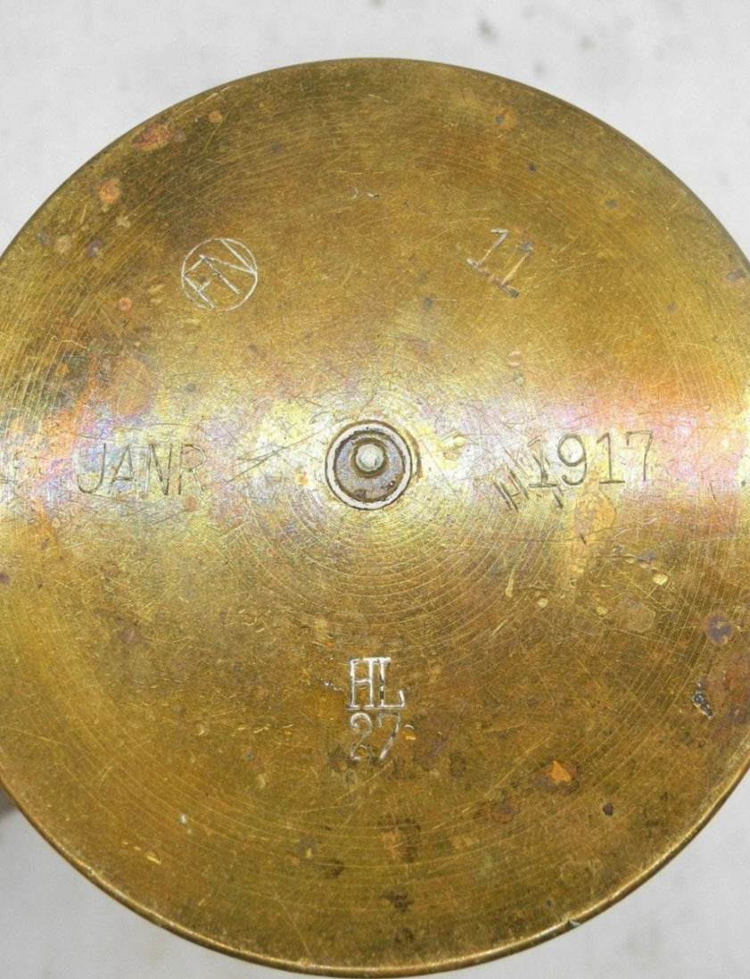 Pair of WWI Trench Art Brass Shell Case Vases — Dated 1917